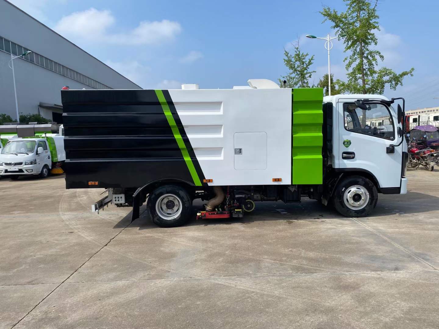 | 隨底盤選裝駕駛室;選裝后部結構樣式.僅采用3308mm軸距;側防護由專用裝置吸盤代替;后防護材料Q235,焊接連接,后部防護斷面尺寸(mm):120×50,離地高度(mm):400;ABS型號/廠家:ABS/ASR-12V-4S/4M/襄陽東風隆誠機械有限責任公司;該車主要由箱體和吸塵裝置組成,用于路面垃圾清掃. | |||
