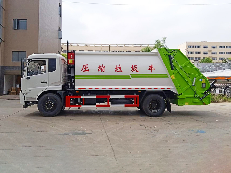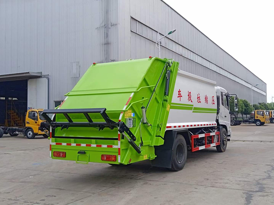 上裝配置:箱體有效容積14立方米,外觀為圓弧流線性造型,底板整體折邊無焊接,杜絕了泄漏風險。威森博樂多路閥,徐州全球通液壓油鋼管,多路閥處硬鏈接,整齊美觀,散熱快,工作效率高,標配壓實閥,有效增加垃圾密實度,增加裝載量。采用CAN總線智能控制系統,具備手動、自動、半自動三套操縱方式,駕駛室內部、箱體前部、箱體后部均可操作,并配備遠程遙控器,可全方位不同的作業環境,方便高效,尾部帶翻轉上料機構。