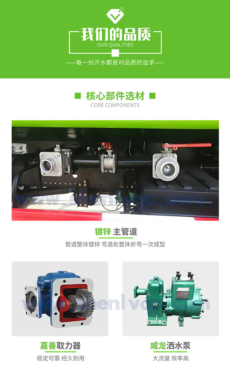 | 選配 | 1、大鴨嘴前沖噴頭,萬向前沖球閥;2、選裝氣動球閥駕駛室內控制;3、選裝自動灑水炮;4、選裝LED箭頭燈,長條警燈;5、選裝食品級304不銹鋼罐體; | |