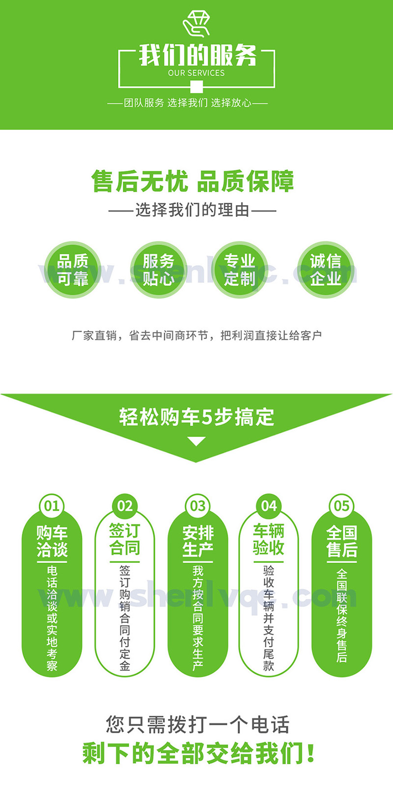 ·創優質服務企業; 造用戶滿意產品; 樹國內知名品牌!公司堅持以“質量求生存、信譽求發展、科技創新路、服務創品牌”的經營理念,以“誠信、務實、創新、進取”為企業宗旨,不斷提升自身產品質量,開發適應市場需求物美價廉的多功能專用汽車! 我們將謁誠為您提供更好、更快、更優質的服務!